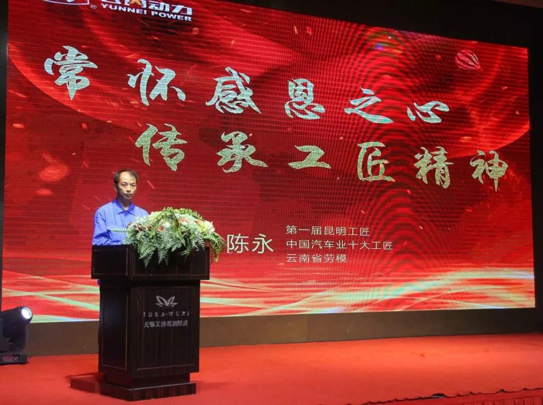 首先,由第一届昆明工匠、中国汽车业十大工匠、云南省劳模陈永师傅结合自身的成长经历,讲述了他是如何常怀感恩之心,传承工匠精神,在云内工作的25年如一日,坚守平凡岗位,用责任与匠心书写不平凡。