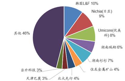 2015 年中国正极材料产量为 10.65 万吨,占全球产量的 47.67%,但是领导厂家还是日韩厂家。