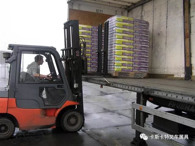 许多公司仍然从货车两侧装卸货物,叉车司机必须在两侧往返。通过使用前移叉,可以在单侧装卸货物,这样不仅节省了25%的时间,而且更安全。因为叉车总是在货车某一侧。这会留出更多可用于存放货物的空间,货车有时甚至可以在室内装卸货。