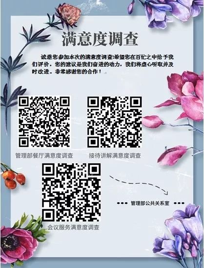 均设有满意度调查APP二维码及纸质问卷
