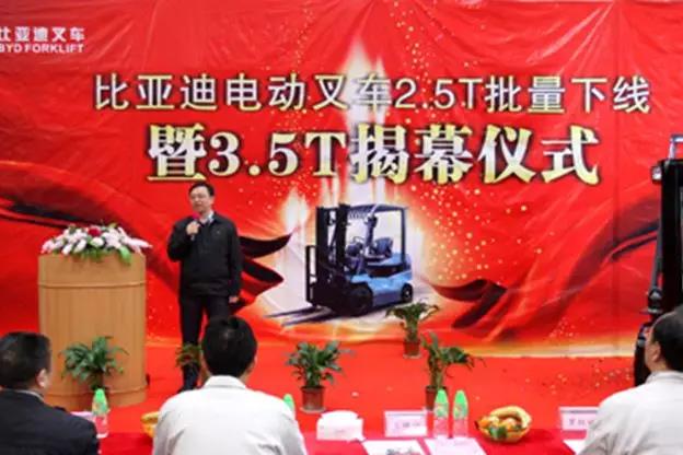 比亚迪作为全球电动汽车的领导者,是全球少有的掌握了动力电池、电源管理、电控、电机等电动车核心技术的企业。比亚迪最为核心的铁电池技术已经成功应用于比亚迪纯电动汽车e6和纯电动大巴K9,其中e6单车最高行驶里程已超过28万公里,品质得到了市场的检验。基于电动汽车的巨大优势和近年来国际物流行业的蓬勃发展趋势,比亚迪于2010年毅然进军叉车行业,推出了全球首款搭载铁电池的电动叉车,完成了比亚迪在新能源产业的又一巨作。经过两年的技术储备及研发,比亚迪已经成功研发出搭载铁电池的平衡重式、托盘式、前移式、堆垛式四大系列的纯电动叉车,并具备了一定的生产规模。一期工程在惠州工业园已建成年产量达2000台的电动叉车生产基地。另外规划中的韶关生产基地面积约13万平米,产年2万台/年,2013年底可以投入使用。