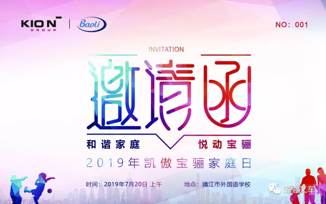 为进一步增强公司的凝聚力和战斗力,展示宝骊人良好的精神状态和风貌,增进员工家属对宝骊文化的了解,2019年凯傲宝骊家庭日将于2019年7月20日(周六)上午在靖江市外国语学校隆重举行,本次家庭日的主题是:“和谐家庭 · 悦动宝骊”,欢迎大家前来观赛助威。诚邀您及家属朋友莅临参加,我们竭诚恭候您的光临!
