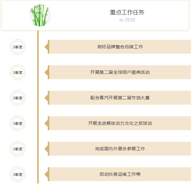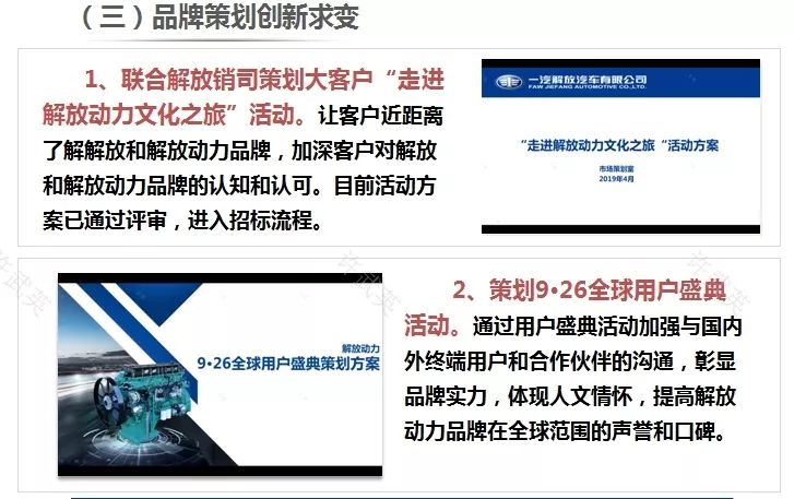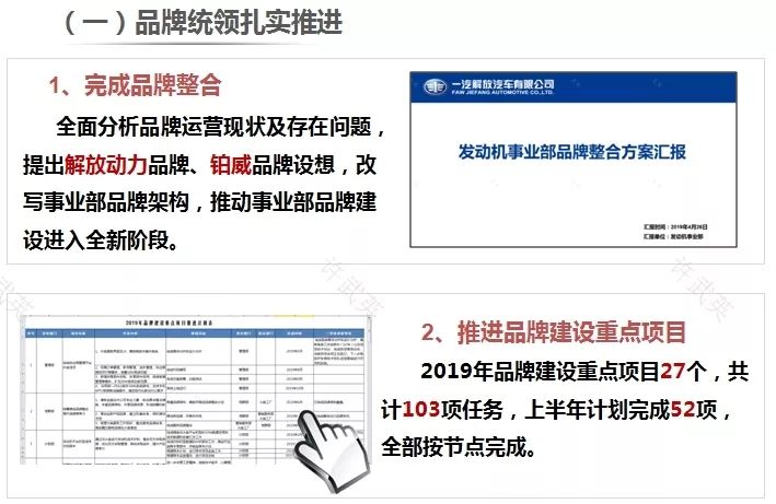 制定解放动力品牌整合工作方案和计划,明确内容、时间和责任人,并根据计划逐步实施