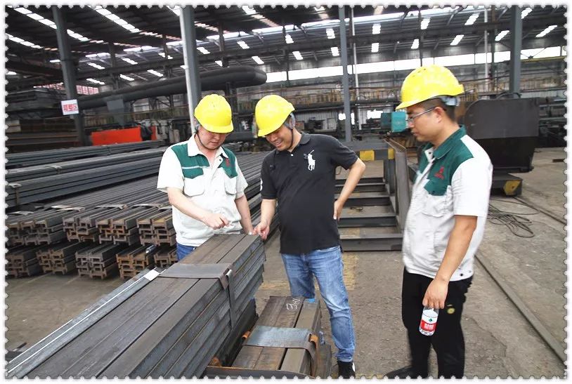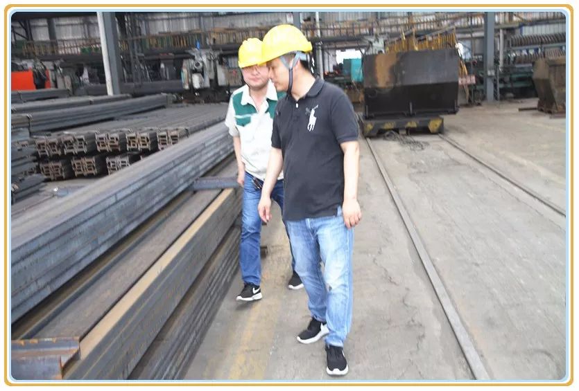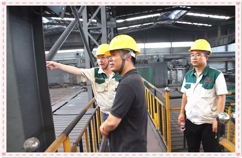 公司生产技术总监郑德辉、销售部长杨普然陪同邹经理到厂区车间进行考察。郑总结合现场生产设备,向来宾详细介绍了生产工艺、热轧设备、技术指标和专业优势等情况。