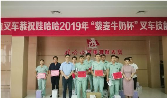 活动的最后环节是由娃哈哈集团工会主席叶峥女生和娃哈哈集团海宁基地蒋曙光总经理为优胜者颁奖,勉励娃哈哈的全体员工形成学技术、练技能、当能手、作贡献、钻业务、赛水平、秀风采、创一流的良好风气,热烈祝贺本届叉车技能大赛圆满成功,并感谢比亚迪叉车多年来对娃哈哈集团的大力支持和帮助,真诚希望能长期与比亚迪叉车携手并进,共创辉煌。
