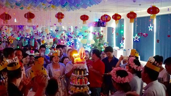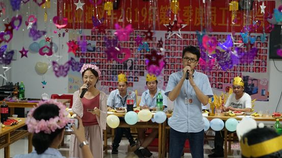 寿星们齐聚在一起共赏精彩节目,并为彼此送上祝福,共同度过一个热闹温馨的生日party。最后,事业部精心设计的抽取幸运寿星环节并邀请幸运寿星为大家切生日蛋糕,并为自己、为事业部、为公司许下美好愿望。