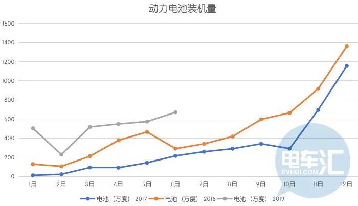 2019年前6个月平均单车装电量达到50度,其中6月是52度,相对2018年6月的44度电,今年的52度较强,主要也是结构性影响。与2018年相比,2019年乘用车平均单车装电量由28度增长到41度,客车平均单车装电量由161度增长到166度,专用车平均单车装电量由50度增长到102度。