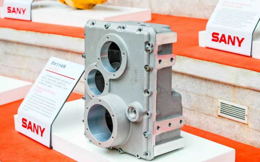 作为展示台上最大的零部件,三一发动机格外显眼。