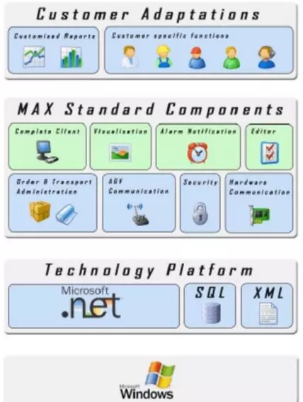 通常用户已经有了主机系统、生产系统或仓库管理系统。在这种情况下,这些系统可以通过定制的通信模块把生产计划或直接的运输任务提供给MAX。也可以在MAX上进行扩展,因为MAX是开放的界面。