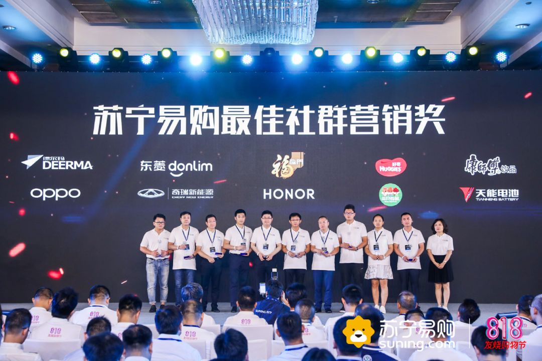 7月25日,苏宁易购818发烧购物节发布会在南京苏宁总部举行,发布会后苏宁易购隆重颁发金狮奖,各大类目各个品牌纷纷上台领奖,天能电池作为电动车类目唯一品牌,荣获“苏宁易购最佳社群营销奖”。