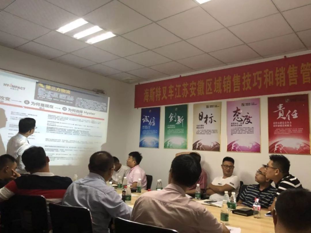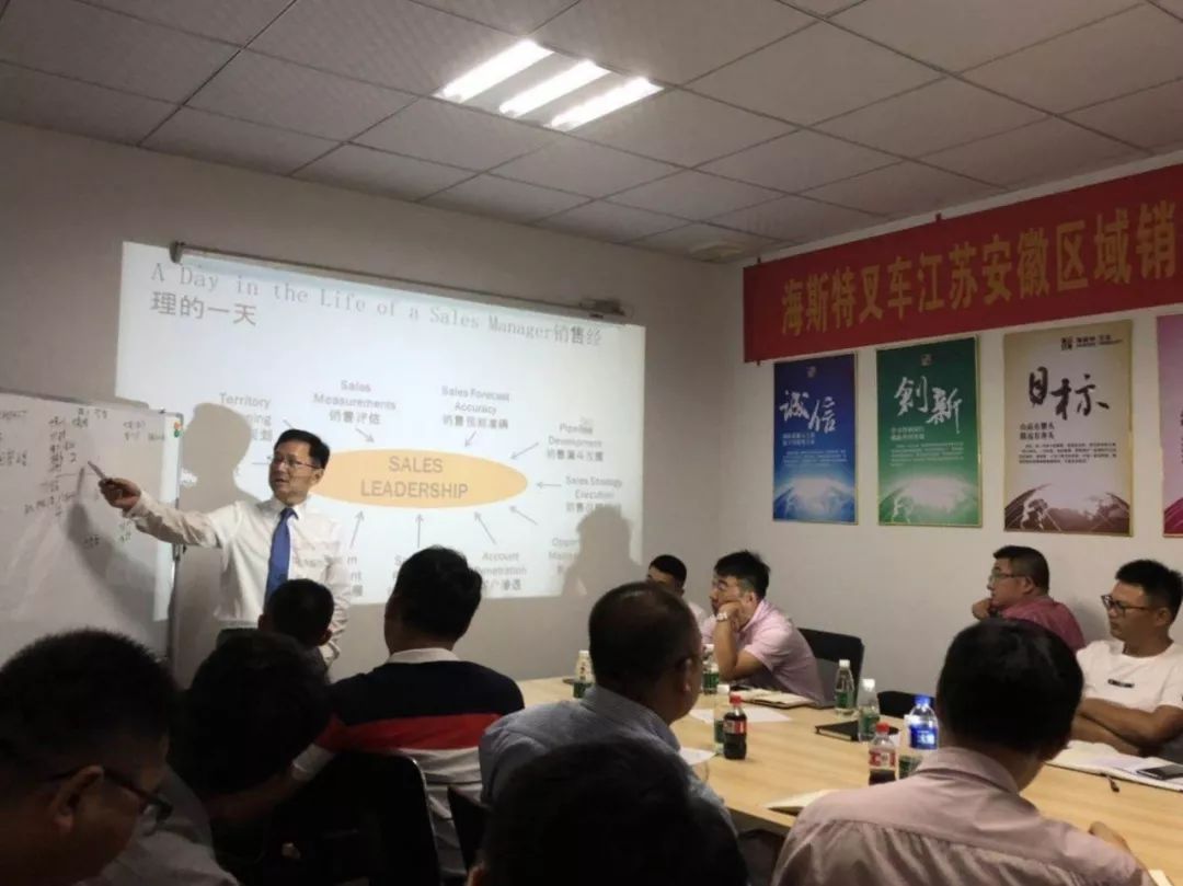 为帮助海斯特各区域经销商提高整体业务能力,2019年7日18日,海斯特市场行业总监赵松亲临海斯特经销商安徽康文斯,为江苏安徽区域众多经销商进行了为期两天的销售技巧和管理培训活动。