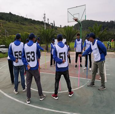 素质拓展训练中有很多的游戏,例如同心鼓、团队跳绳、盲人方阵、动力圈等,每一个游戏无不都在体现团队合作的重要性。让我印象最为深刻的一个游戏就是“穿越电网”,“穿越电网”的游戏规则是:“网”是唯一通道且具有单向性,同一时间内每个网洞只允许一人通过,通过后即封网,任何人任何物都不允许触碰网,否则挑战失败,全体成员需重新来过,在有限时间内全员按规则安全通过才算挑战成功。