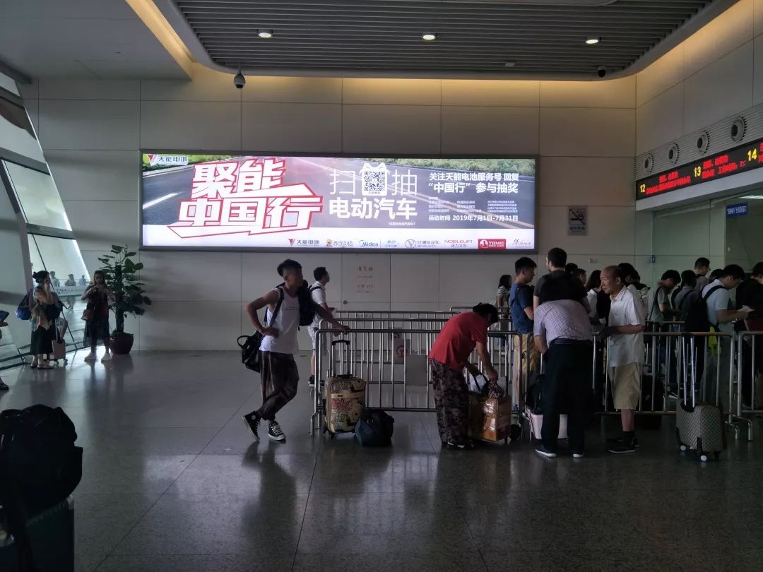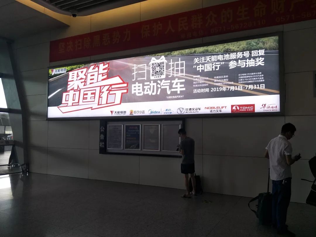 除了列车,在杭州东站的四个主要通道的巨幅广告位也张贴了相应的广告。