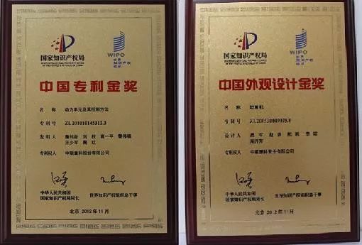 ▲中联重科获得的中国专利金奖和中国外观设计金奖“双冠”奖项