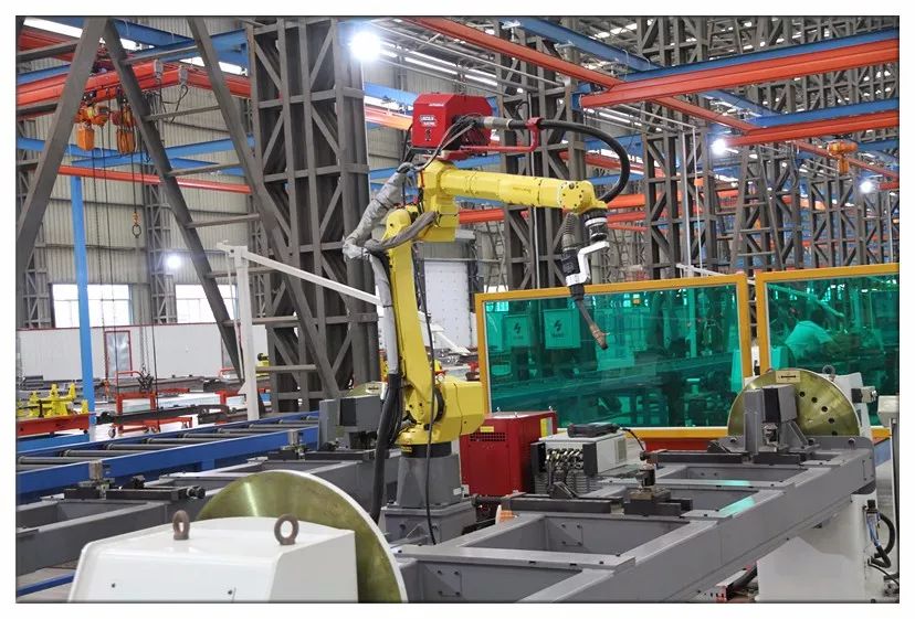 盛航环保机车有限公司焊接车间,宽敞整洁的生产环境中,依次排列的11台机器人生产线正在同时作业,据公司负责人介绍,他们正在为韩国现代重工的订单进行零部件生产,这处位于车间一侧的三坐标检测中心时时保证对加工的零部件质量进行检测监控。