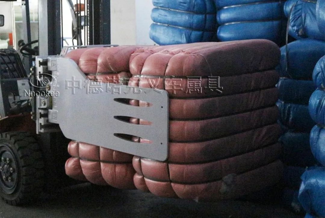 在这样的作业现状中,一款专用于辅助叉车完成高质量、高效率搬运的属具,出现在人们的视野当中:中德诺克棉花软包夹。
