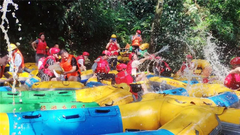 在四面青山环绕,阳光时而斑斑点点,时而普照的河谷,乘着橡皮艇,顺流而下,时而湍急,时而平缓。你漂流其间,伴随着一路发出的尖叫、欢呼,迎来了期待的刺激、惊险,也放纵了一路青春的模样。