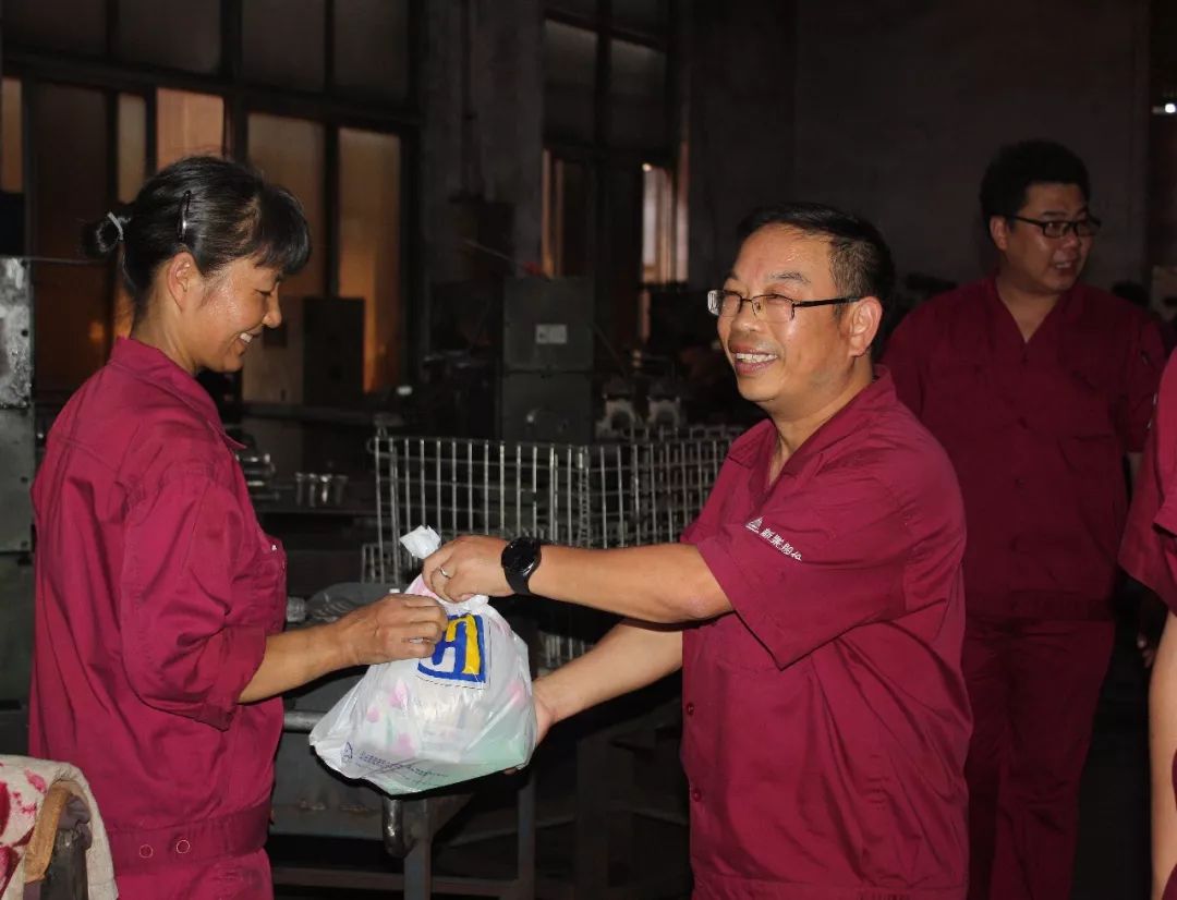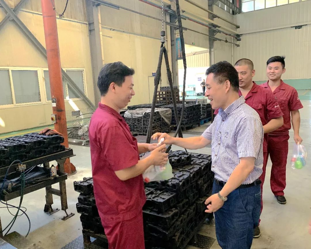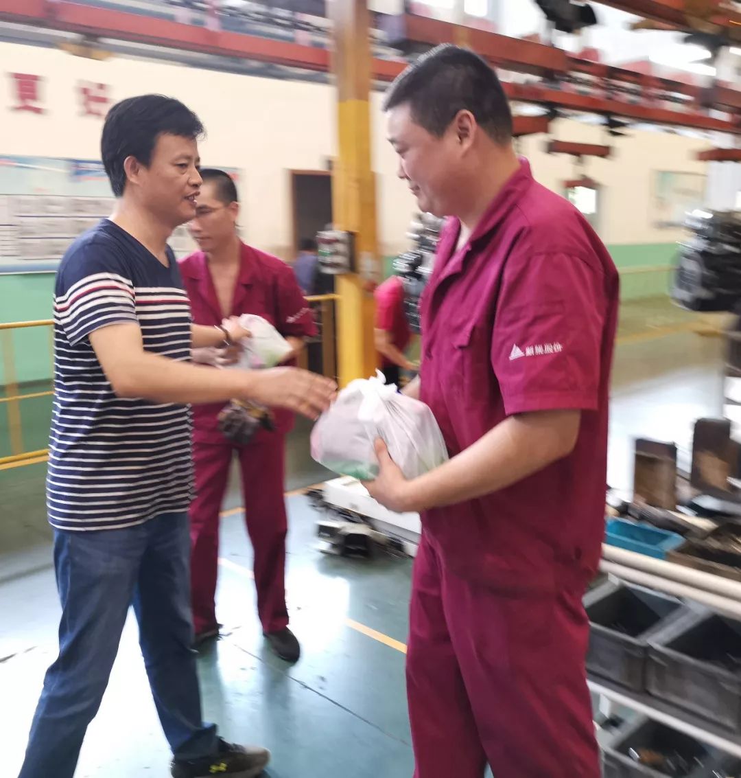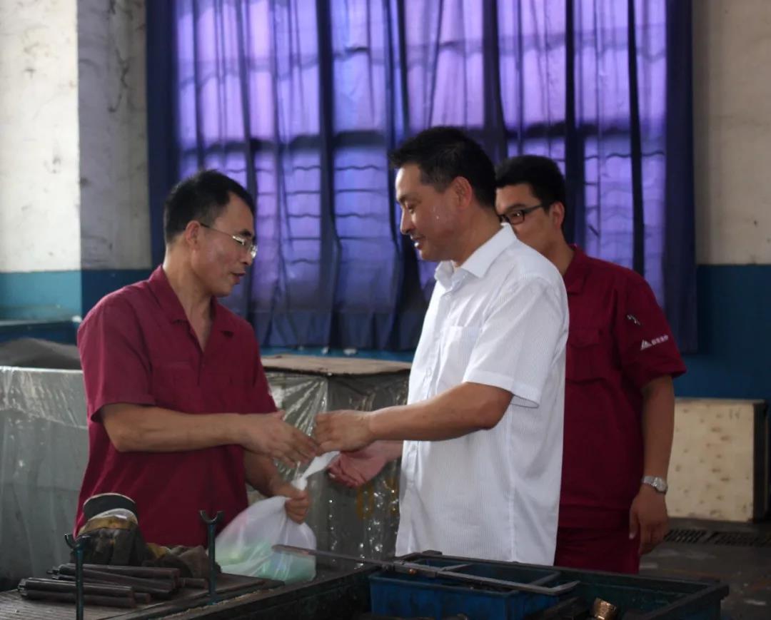 8月6日下午白洪法董事长、石荣总监、袁立涛总监一行分别慰问了装配、测试车间、E工厂;桂梓南总监、杨斌飞总监一行分别慰问了技术中心试验室、仓储物流中心;李炜总监一行慰问了铸造工厂;张春总监、周高峰总工程师、梁玉成部长一行慰问了下石演分厂。时虽然热浪扑面,但生产现场井然有序,员工们忙碌地工作,慰问的领导们走近员工生产岗位,向员工送上毛巾、矿泉水等解暑降温用品,叮嘱员工在当前持续高温的不利条件下,做好生产安全工作,同时注意防暑,劳逸结合,对大家坚守岗位、辛勤工作,有力保证公司生产经营目标顺利进行表示衷心的感谢。