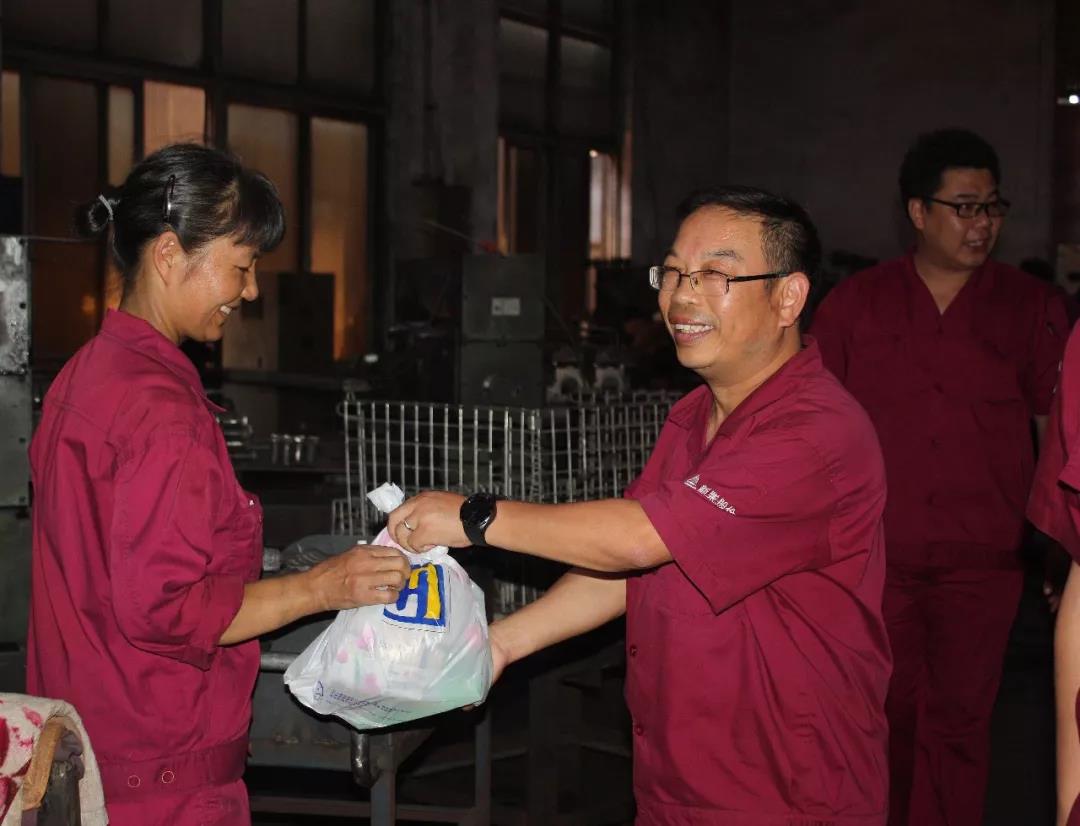 连日高温,热浪袭人。公司广大职工抗高温,战酷暑,依然坚守在工作岗位上。近日新昌县总工会党委书记副主席王力红、办公室主任丁淑锋等一行;公司白洪法董事长和各条线总监一行分别到公司生产现场,慰问在酷暑中坚守岗位、辛勤劳动的一线职工,表达了对职工真挚的问候和关心。
