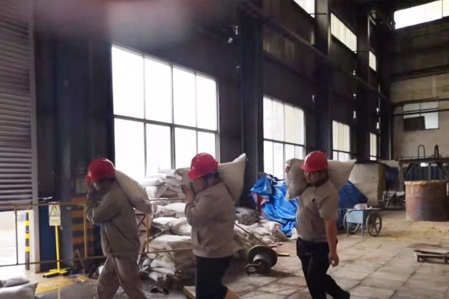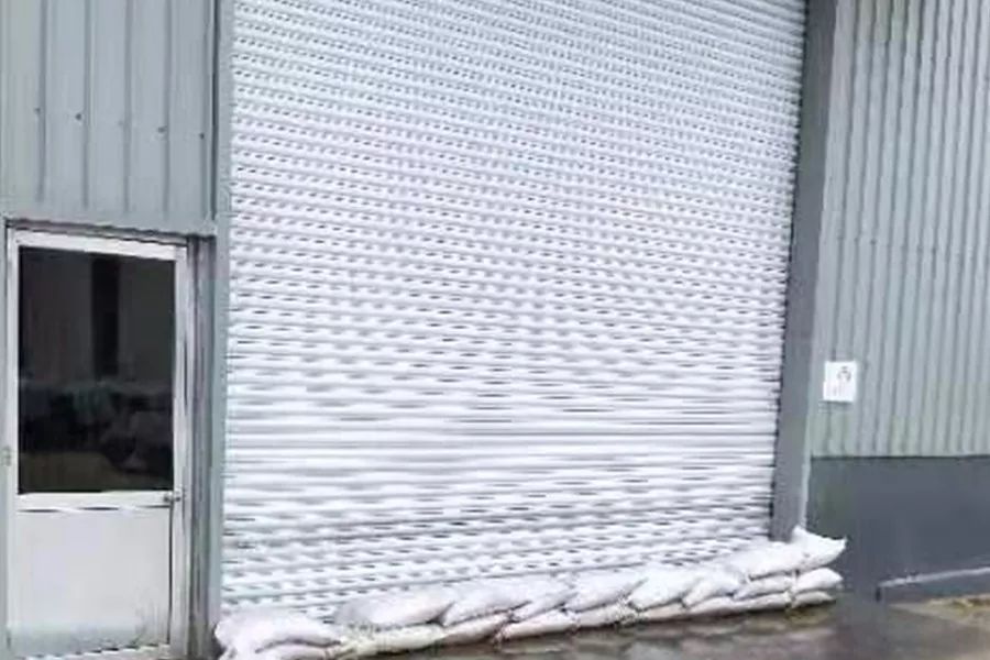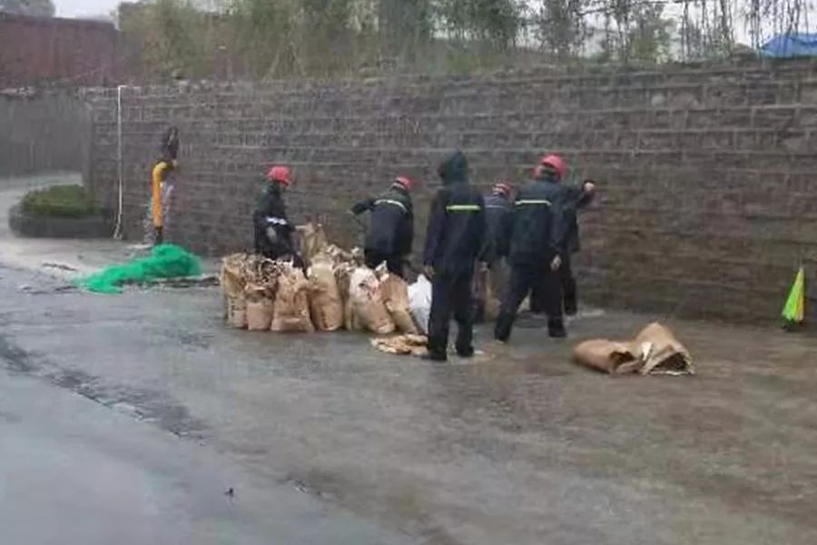 防汛小组在各个车间门口都提前配备好阻水沙袋。