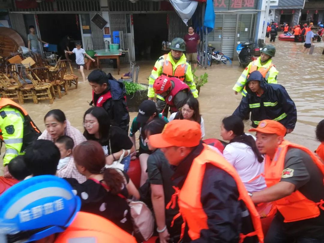公司民兵应急分队还参与了七星街道应急勤务值班。10日中午12时,镜岭镇沿村告急,由于上游磐安水库泄洪,镜岭江沿江一带村庄受淹遭灾,群众与游客被洪水围困,我公司民兵应急队员(柴宇平,王永旗,李杰,金黎康,张泽勇)由徐海东带队,会同兄弟单位和七星街道领导火速驰援镜岭镇雅张村灾区,应急分队用冲锋舟在洪水里来回穿梭,往返数十趟将当地老百姓、游客、老人和儿童约60余人全部解救到安全地域,并统一送往集中安置点。同时争分夺秒的把抗洪救灾物资(矿泉水、饼干、方便面等)运送到村庄灾民手中,受到当地老百姓与上级部门的高度称赞与表扬。通过这次抗洪抢险,充分体现了我们新柴民兵应急分队的光荣传统和优良作风,展现了新柴人满满的正能量。在这次“8.10”抗洪抢险中取得全面胜利留下了一道新柴人的靓影!