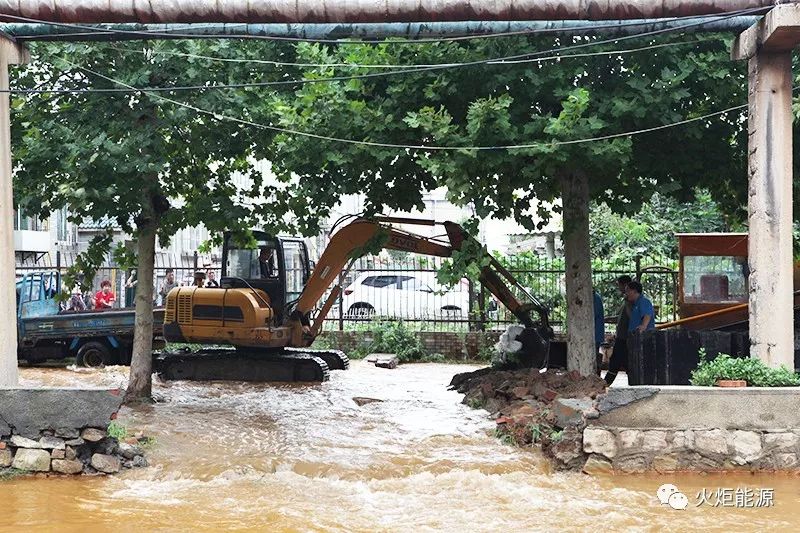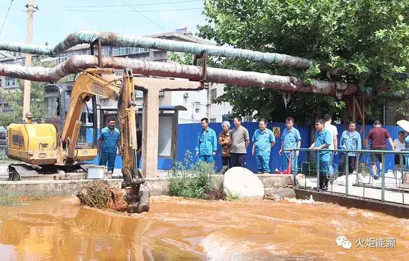在连续四日三夜的抗洪抢险之后,14日一早,公司有关领导即带领保卫部、动力工程部人员再次来到现场,结合即时汛情研究制定解决方案,调来工程车辆备用。周中杰、李玉柱、陈维扬等领导现场商讨排水方案,抗洪人员力排各种不利因素,清除河道杂草,打开上游来水与暖水河的连接渠道,并在周边区域打造沙袋围堤,引水入河,有效缓解社区积水。
