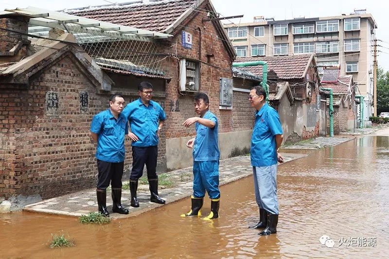 8月14日上午,风帆公司党委副书记、总经理周中杰来到火炬能源社区,现场查看社区受灾情况,指挥抢险救灾工作,火炬能源公司领导李玉柱、陈维扬陪同查看汛情。