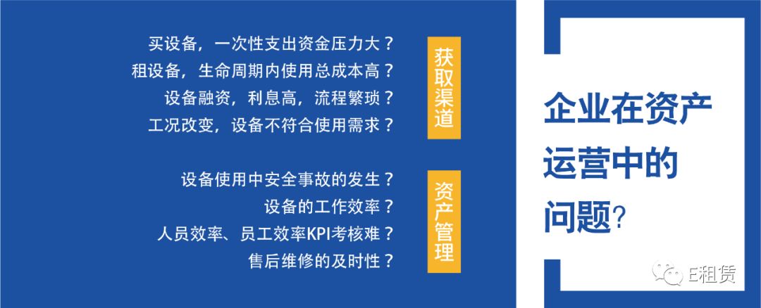 E租赁坚持以提高体验度为唯一目的,打造全方位一站式工业设备租赁服务平台,通过融e租、经营性租赁、传统交易、融资性租赁为一体的综合性交易平台,获取如叉车、高空车、清洁设备等产品设备需求,为客户提供物联网资产管理服务。