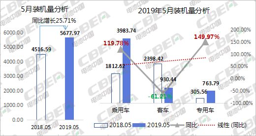 电池中国网6月10日官方微信平台发布:动力电池应用分会研究部统计数据显示,2019年5月我国新能源汽车动力电池装机量约5.68GWh,同比增长25.71%,环比增长4.95%。