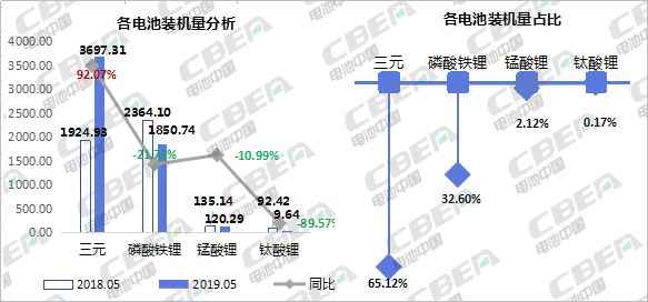 磷酸铁锂呈回暖趋势,国轩高科技术优势凸显从动力电池种类来看,2019年5月配套的三元动力电池装机量约3.7GWh,同比增长92.07%,环比下降1.75%,这一现象受乘用车市场产量下滑所致,市场占有率较上月下降了近5个百分点;相反,本月磷酸铁锂装机量为1.85GWh,市场占有率较上月增长近3个百分点,其原因主要配套在专用车领域的磷酸铁锂电池在增长。