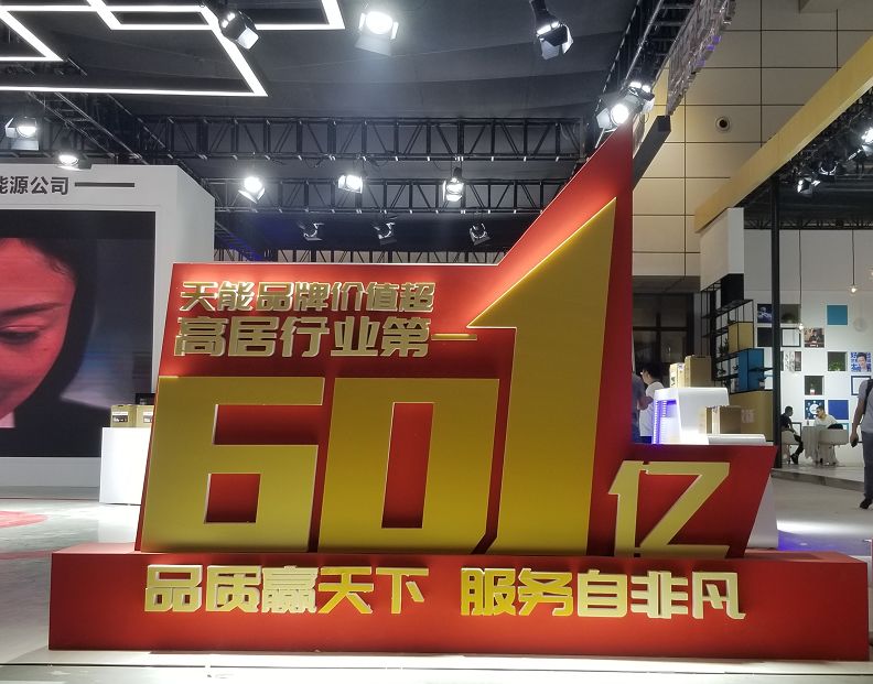 展馆入口处,天能电池巨幅的喷绘广告成功吸引了所有人的注意,“天能品牌价值超601亿,品质赢天下,服务自非凡”等广告语映入所有参展人员的眼帘,可谓是赚足了大家的眼球。