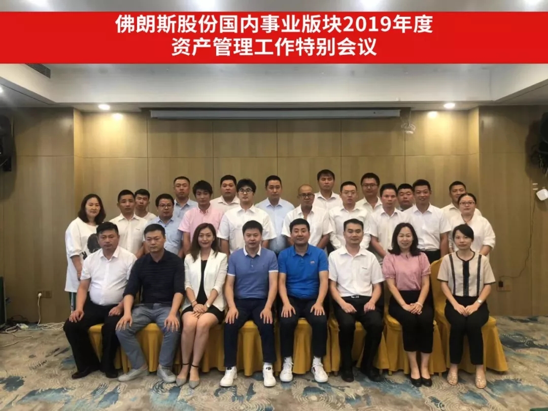 2019年8月23日,佛朗斯股份国内事业版块华北、东北片区2019年度资产服务管理工作特别会议在天津圆满召开,总经理侯泽兵、总助霞朝明、总部及华北、东北片区分公司的租赁服务经理和维修经理参与此次会议。