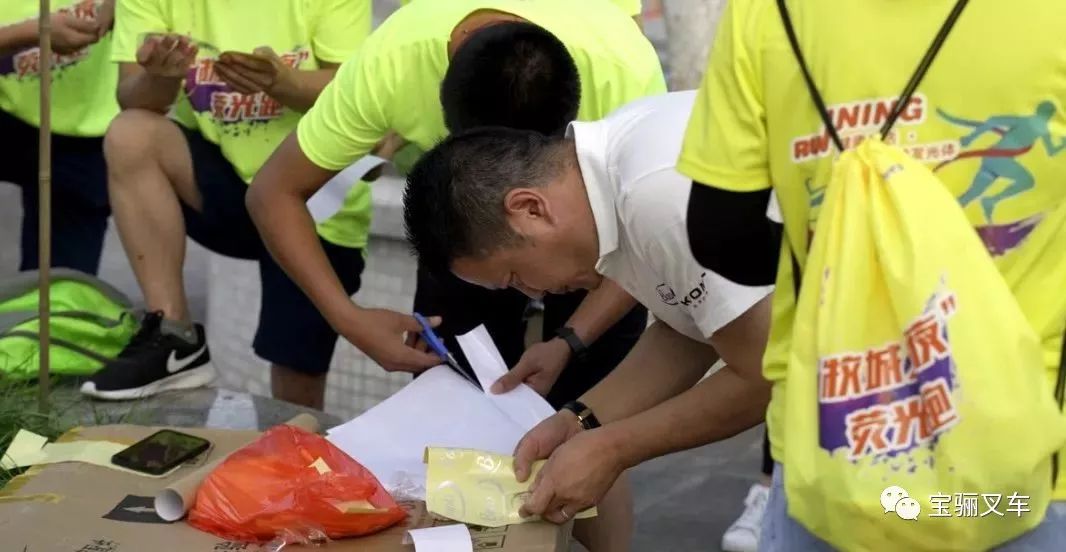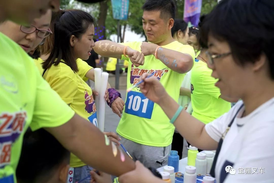 下午五点半,正是傍晚时分,夜幕还未降临,跃跃欲试的参跑者们已经纷纷来到现场领取夜跑装备,进行跑前的装扮。入口处的签到板上,彩色板面与荧光图标上面已被签上了许多眉飞色舞的名字。宝骊后援团也带来了精心准备的手绘应援牌、宝骊旗帜,为参跑者们加油打气。