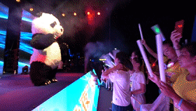 夜跑在嗨爆全场的劲歌热舞和划破夜空的欢呼和尖叫声中正式开始,正点19:30分,随着号令声响,大家挥舞着荧光棒,欢乐出征,在园内形成了一条靓丽的“彩色长带”。