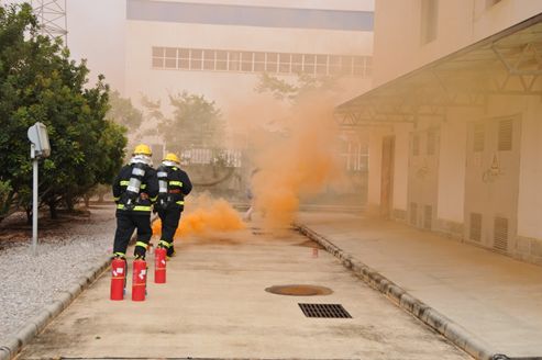 降压站值班人员立即向环境安全管理部消防控制室求助,接到报警电话后,环境安全管理部应急消防队立即出动,赶往现场。