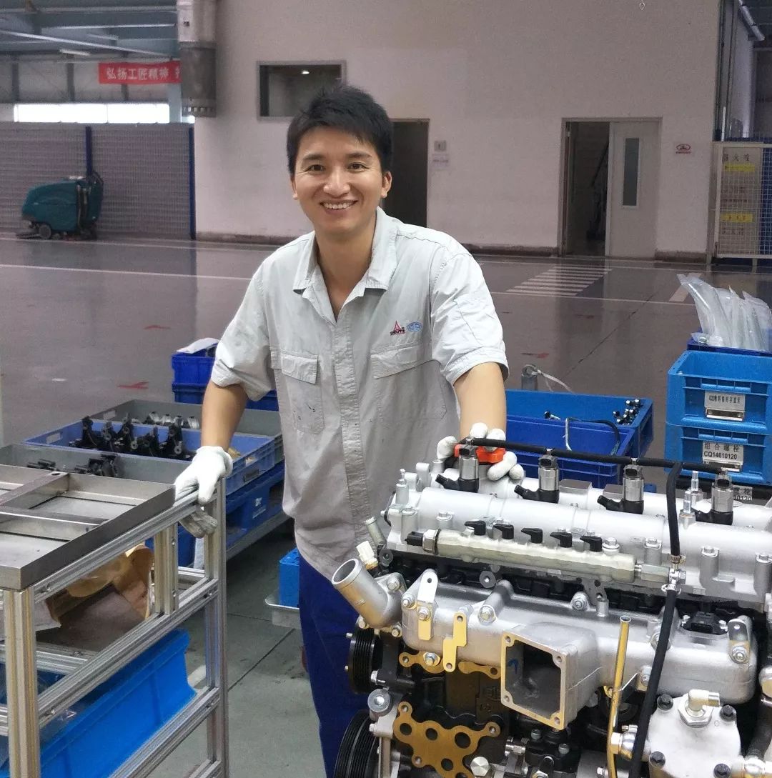 3月8日,我第一天进到老厂区装配车间实习,我上了人生的第一个夜班,那一夜至今记忆犹新,车间内灯光通明,在明亮的灯光下,那条装配线显得有些老旧,一台台发动机从工人师傅们还有我的面前经过,师傅们重复着熟练的动作装配着发动机。带我的师傅给我演示他这个岗位的操作要领,我将他的动作尽收眼底并按照要求操作,我想我脸上当时的神情应该是强装着高傲。
