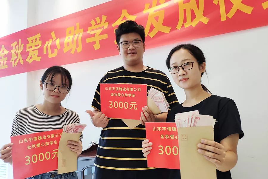 在山东宇信集团,有着这样的传统:为员工孩子或周边乡村考上大学的学子们资助奖励,每人3000元!