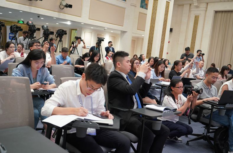 今天,天能集团董事局主席张天任参加了国务院新闻办公室举行民营企业家代表与中外记者见面会,并且围绕“弘扬优秀建设者精神,助力民营经济高质量发展”的话题与中外记者展开交流互动。一同参加这次记者见面会的还有比亚迪总裁王传福,尤尼泰总裁蓝逢辉两位优秀民营企业家。