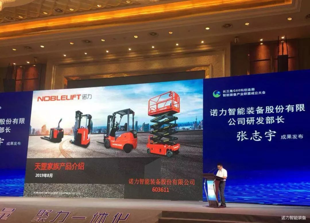 长三角G60科创走廊智能装备产业联盟正式揭牌成立。该联盟由高端智能物流装备、智能电梯、新能源汽车、智能停车设备、机器人等相关的企事业单位、科研机构、检测机构等155家单位组成。会议现场确定了诺力智能装备股份有限公司(以下简称为“诺力股份”)为理事长单位。诺力股份院士专家工作站签约院士谭建荣、诺力股份研究院副院长刘杰当选为该联盟的专家委员会成员。
