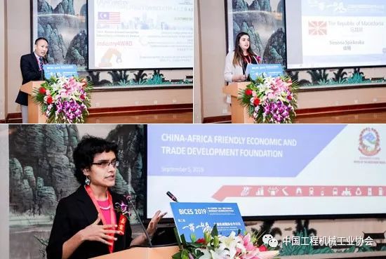 会议由中国贸促会机械行业分会周卫东副会长主持,中国工程机械工业协会祁俊会长、中非友好经贸发展基金会张仪理事长分别代表论坛主办方致辞;中铁高新工业股份有限公司李建斌总经理、广西柳工机械股份有限公司国际业务梁永杰总监、中国国机重工集团国际装备公司陈卫总经理分别代表中方企业分享在“一带一路”沿线国家开发市场的经验和建议,来自马来西亚、马其顿、尼泊尔等国家的使馆官员和商务代表分别进行了主题演讲。