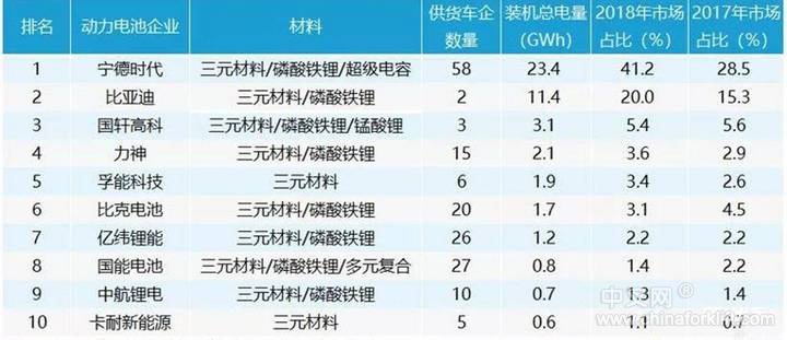 以 2018 年动力电池装机量为参考,我国动力电池十大龙头企业包括:宁德时代、比亚迪、国轩高科、力神、孚能科技、比克电池、亿纬锂能、国能电池、中航锂电、卡耐新能源。数据来源:第一电动(www.d1ev.com)