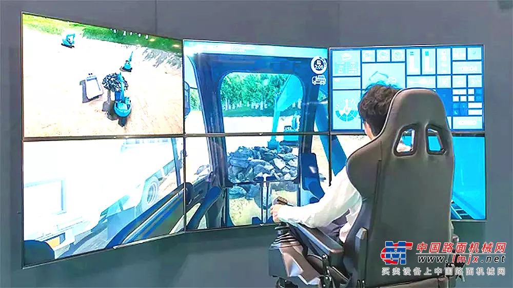 本届展会上中联重科展出的土方机械5G远程操作系统。在展会现场向观众开放体验,通过5G技术操控位于千里之外的长沙
