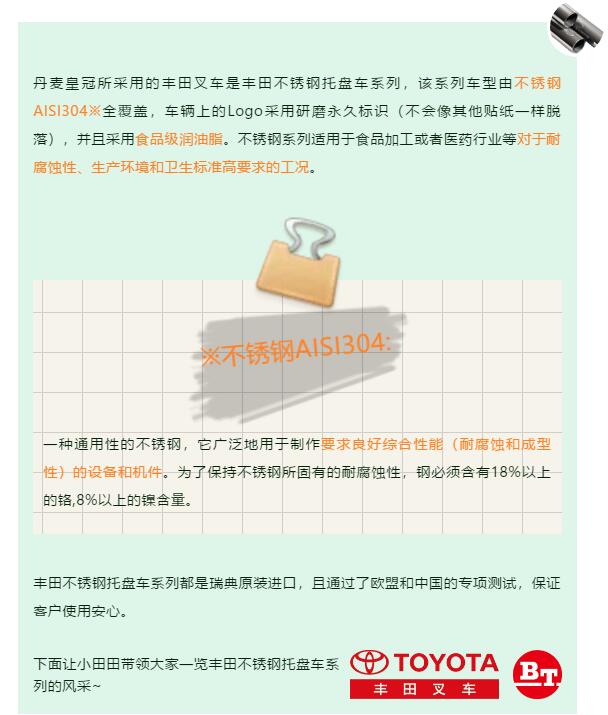 其实,丹麦皇冠也是丰田的老客户。9月11日,丰田叉车总经理山村圭弥先生、全球大客户同事们和经销代表也有幸应邀参加丹麦皇冠集团中国工厂在浙江平湖市经济开发区举行的开业典礼。