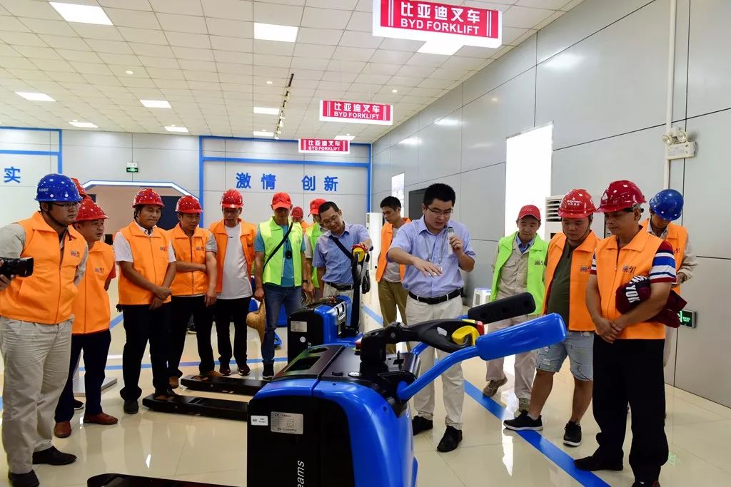 技术交流会上,比亚迪相关人员给与会人员做比亚迪叉车及主营业务简介,并引领大家参观智能管理平台、展车,车间检测、装配众作业区。比亚迪工厂整洁的生产环境、先进的管理模式及工具引起大家强烈的好奇与兴趣。选手之间、负责人之间展开热烈的交流与讨论。