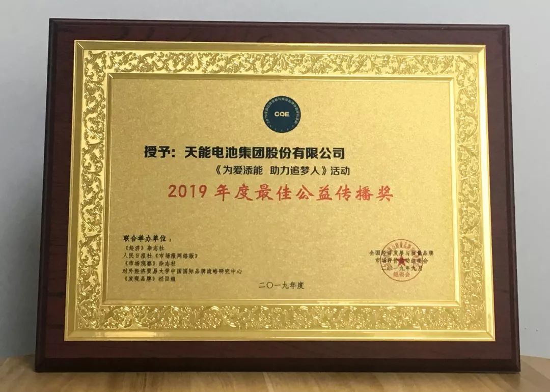 2019全国经济发展与质量品牌市场评价活动暨“质量月”中国企业质量品牌建设高峰论坛于9月18日在北京中华全国总工会职工之家隆重召开。由天能电池主办,并联合辐轮传媒、支付宝、爱玛电动车、猛犸充电等多家企业举行的“为爱添能,助力追梦人”活动受到专家认可,并荣获“2019年度公益传播奖”和“2019年互动传播奖”两项殊荣。