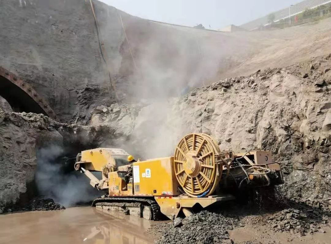 在大柱山隧道项目施工中的徐工XTR悬臂式隧道掘进机出色地完成施工任务,并大大缩短了工期