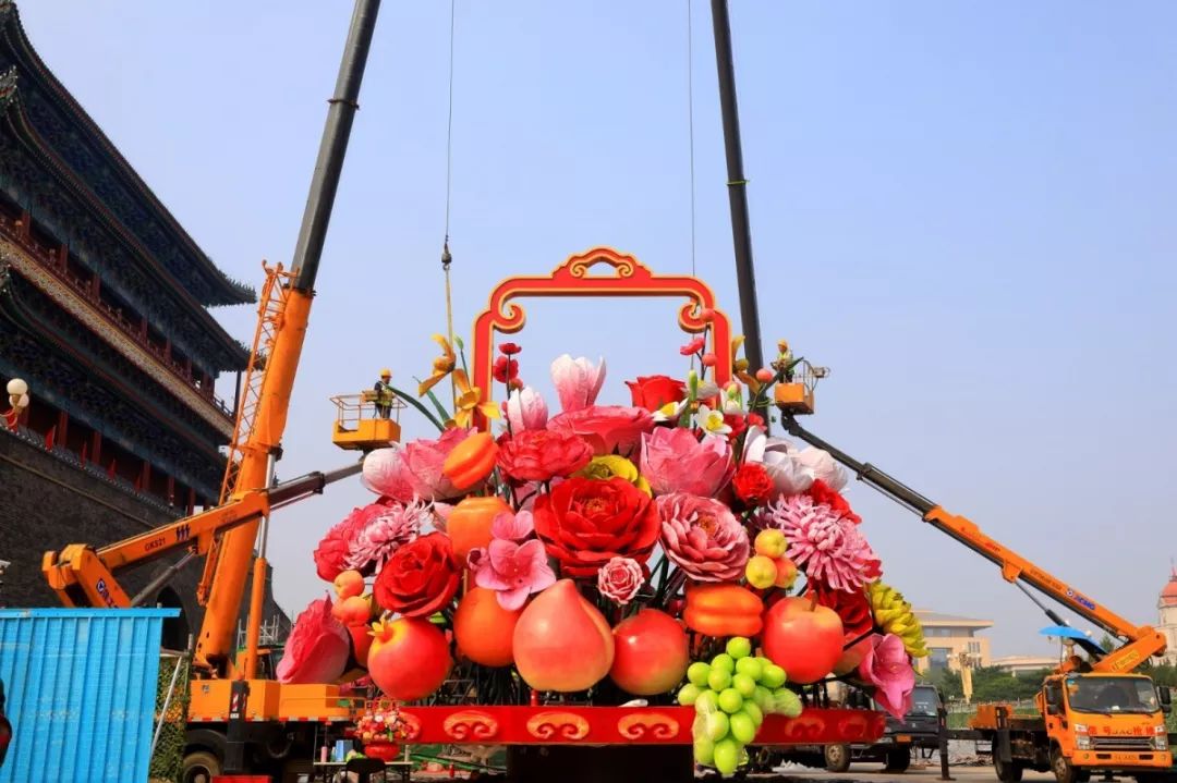 徐工起重机、高空作业车助力巨型花篮的装饰作业