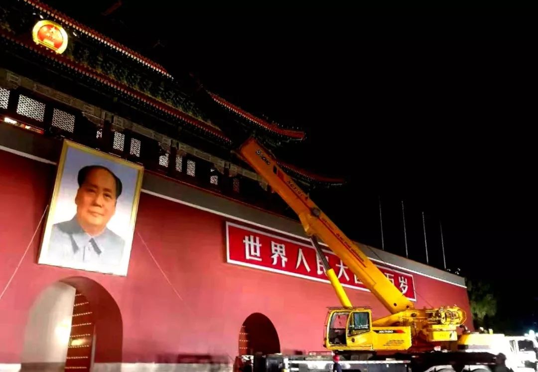 9月24日,徐工汽车起重机参与天安门城楼毛主席画像“换新”工作