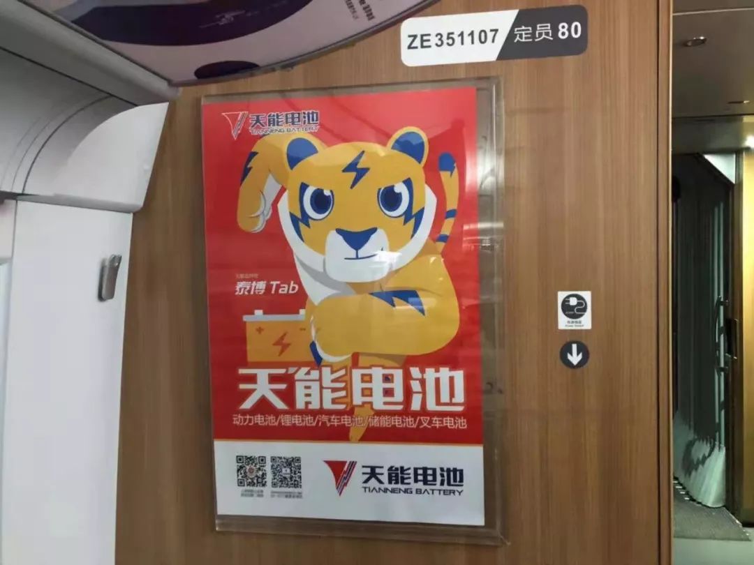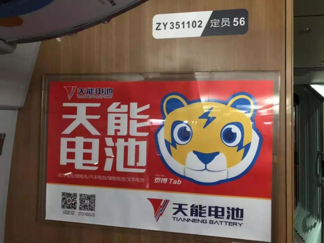 与此同时,“天能号”品牌专列,在原先冠名列车的基础上再次提升了高端品牌形象!把天能品牌与产品元素融入到列车的各个环节,通过外车身广告、车内海报、车身内外门贴、LED显示屏、语音播报等方式,全方位、立体化展现天能高端“移动长廊”,实现品牌与产品信息的联动营销。
