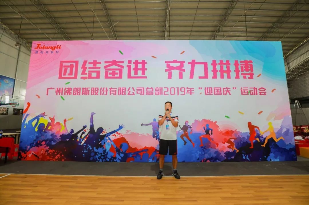 在运动会开始前,董事长侯泽宽先生向大家作了简单的动员,希望各位家人们能在运动会中遵循规则、齐力拼搏,享受运动带给我们的欢乐,展现佛朗斯人团结奋进的良好精神面貌。